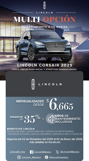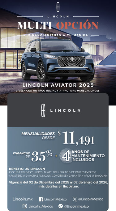 Lincoln Chihuahua, con domicilio en, Calle Periferico de la Juventud 6701, Colonia Haciendas del Valle, C.P. 31001, Chihuahua, es responsable del tratamiento de sus datos personales. La información de nuestros clientes y clientes potenciales es tratada de forma estrictamente confidencial y es tan importante como su seguridad al conducir nuestros vehículos, por lo que hacemos un esfuerzo permanente para salvaguardarla.